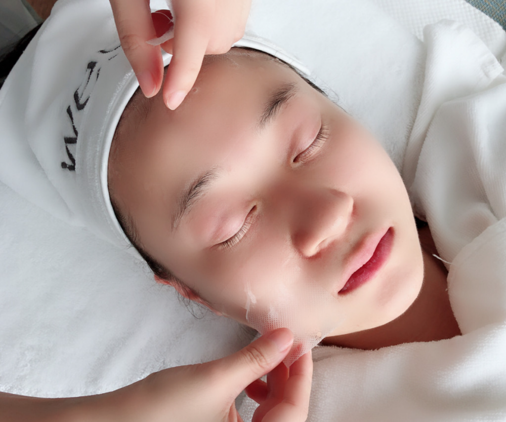 6. Prepared the modeling mask first, then cover the client’s face with gauze, then apply the modeling mask on the client’s face.